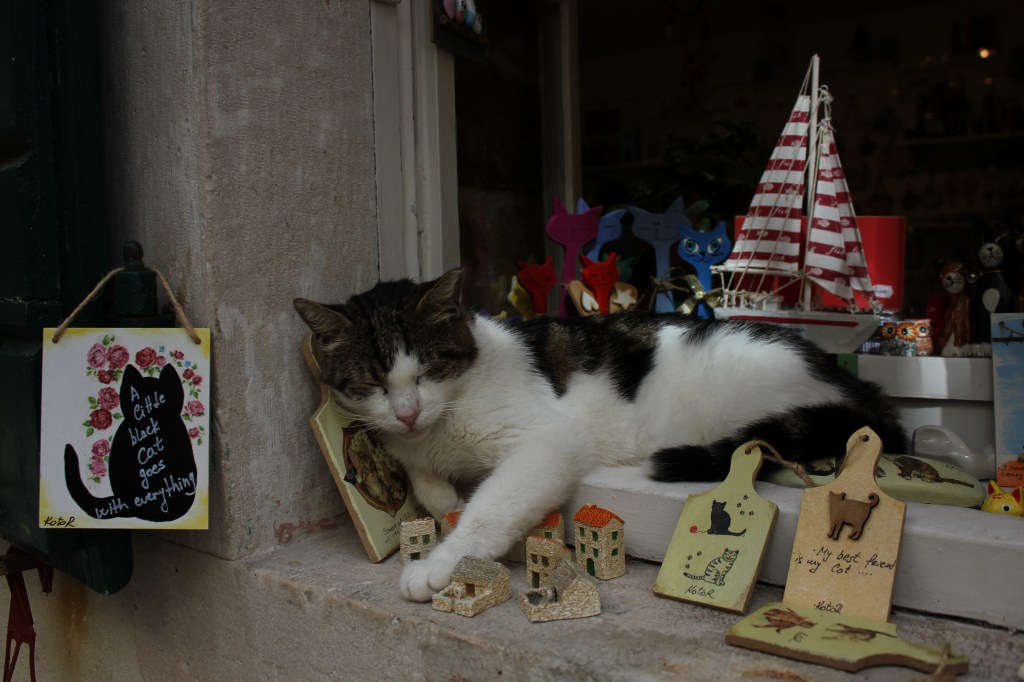 Kā nākamo pilsētu izvēlējāmies apskatīt Kotoru, kas tiek uzskatītu par līča pērli, jo tieši tur piestāj lielie kruīza kuģi. Vecpilsēta ir pa tiešām unikāla ar savām mazajām ieliņām un senatnīgo arhitektūru. Sajūtas ir kā viduslaiku filmā, tikai visi ir nepiemēroti apģērbušies. Kotora ir kaķu pilsēta un viņu šeit patiešām ir ļoti daudz. Ir daudz suvenīru veikalu, kas veltīti tieši kaķu tematikai. Viņi arī guļ visneiedomajamākajās vietās.