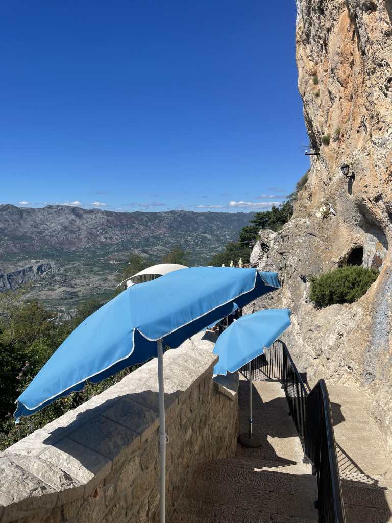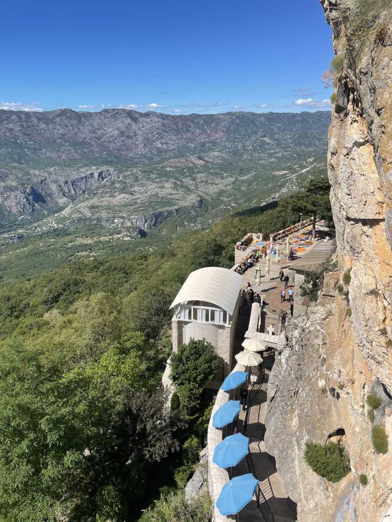 Mūsu plānā bija brauciens uz Montenegro ziemeļu daļu, Žabļakas pilsētiņu, no kuras ir viegli nokļūt dažādās pastaigu takās Durmitora nacionālajā parkā. (Visu laiku jāpārbauda vai uzrakstu pareizi, jo mēs viņu saucām par Dumidoru 😀 )Taku šajā reģionā ir patiešām daudz. Brauciens no Herceg Novi līdz kalnu pilsētai ir gandrīz trīs stundas, jo paceļam ar nelielu līkumu aizbraucām apskatīties Ostrogas klosteri, kas ir saglabājies no 17.gadsimta un ir iebūvēts klintī. Iespaidīga vieta. Lai nokļūtu līdz klosterim varēja nosirmot, jo ceļš veda augstu kalnā un bija vieni vienīgi serpentīni ar pretim braucošām mašīnām un ceļa malās bija pavisam nelielas barjeras, kas noteikti nekā nepalīdzētu nenolidot no klints. Nolikām mašīnu stāvlaukumā un sākām iet, kad kāds vīrs vecā mersī teica, taxi, domājām, kam mums taksi tas jau tepat, bet kad sākām iet un ieraudzījām trepes, sapratām kāpēc taxi 😀 😀 Taču nebija arī tik traki. Labi, ka braucām šeit turp ceļā nevis atpakaļ ceļā.