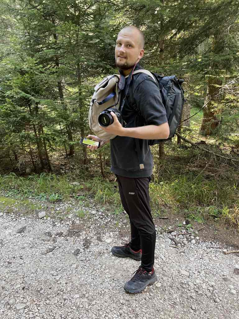 Tā nu gājām tālāk un domājām, kur tad būs tie skaistie skati, jo tikai mežs un mežs. Bet nu kas iet tas atrod. Nonācām pirmajā skatu vietā un bija vērts iet. Bija vieta ar diviem soliņiem, kur skats bija ok, bet izejot cauri krūmiem pavērās pavisam labs skats. Domāju atstāšu somu uz soliņa, jo tāpat nav neviena cilvēka, bet beigās paņēmu līdzi. Nākot atpakaļ, tur sēdēja vīrietis 😀 paēda un sāka doties tālāk, teicu, lai aiziet tur tālāk, jo skaisti. Tā palīdzējām viņam redzēt smukumu, ko būtu palaidis garām. Uzēdām maizītes un žāvētās aprikozes un devāmies tālāk.