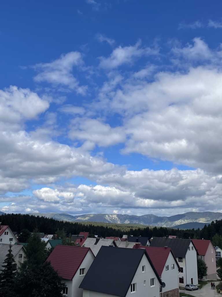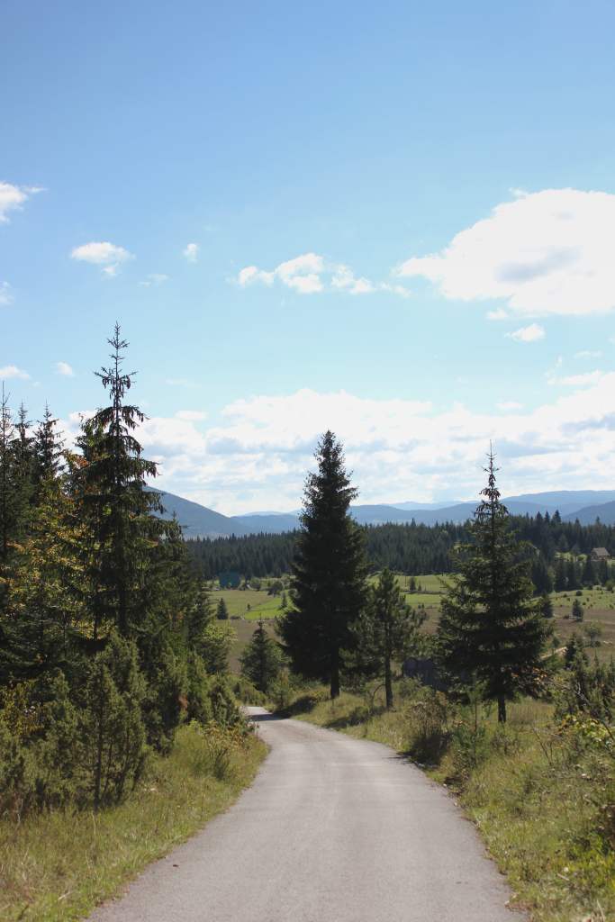 Izstaigājām un braucām tālāk. Pa ceļam bija daudz skaistu skatu ar dažām mazajām foto pauzītēm. Temperatūra arī sāka slīdēt uz leju. Kopumā mums ļoti paveicās ar laiku, jo visas dienas, ko bijām tur spīdēja saule un bija līdz +20 grādiem, taču pēc tam bija lietus un palika krietni aukstāks. Žabļakā sajutām, kas ir rudens un kas ir džemperis. Mēs palikām dzīvoklītī pilsētā, pa ceļam varēja redzēt daudz un dažādas koka mājiņas, kas neizcēlās ar arhitektūriskām inovācijām, tās vairāk bija tādas, kā zīmēju bērnībā, četrstūris ar trīsstūra jumtu 😀
