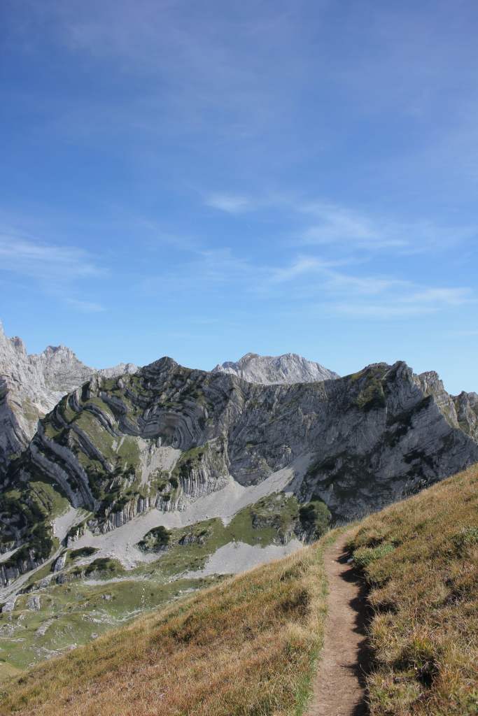 Sasniedzot pirmo punktu varēja uzsist sev uz pleca, ka liela daļa grūtību ir pārvarētas un pavērās pasakains skats uz ieleju, taču tad varēja pagriezties uz otru pusi un redzēt, ka pēc lēzenās taciņas sekos pamatīgs kāpiens atkal augšup. Te nu man atkal uzradās filosofiskais jautājums, kāpēc ir sevi tik ļoti jāizaicina un jānomoka, obligāti sasniedzot virsotni, ja tepat paejot nedaudz uz priekšu var redzēt pasakainus skatus. Kāpēc ir tik svarīgi uzspraust to mērķi un par visām varītēm viņu sasniegt. Kāpēc nevar vienkārši apstāties un pateikt, esmu malacis, esmu sasniedzis pietiekami, tepat ir skaisti un man nav obligāti jānonāk tur augšā. Bet tad atkal ieslēdzas otra puse, kas saka, ka gribas taču zināt kā ir tur augšā un vai es vispār varu to izdarīt. Laikam jau savā ziņā negribas piedzīvot, ka kaut kas neizdarīts tiek nožēlots, jo pēc tam jau neinteresēs, ka biju sagurusi vai nebija īstā diena. Vienkārši atmiņā paliks fakts, ka neuzkāpu. Ir svarīgi sevi jāpazīt un izvērtēt, ar ko tu spēsi sadzīvot, nesasniegt mērķi vai pārbaudīt savus limitus līdz maksimumam. Kuru no “grūti” izvēlēsies tu, jo abi ir grūti. Aiz mums gāja pāris, kuriem bija pāri 40 un viņi apstājās smukajā vietā, apsēdās aiz akmens un palika baudīt turpat, viņiem nebija svarīgi uzkāpt līdz galam. Varbūt tas ir mūsu jaunības spīts. Vai vienkārši esot vecāks tu spēj labāk izvērtēt, ko tev patiešām vajag un spēj pateikt, man tepat ir labi un man nav jākāpj līdz galam. (Bet kā ir patiesībā es nezinu, tā ir tikai mana interpretācija esot krietnu gabalu priekšā un atskatoties atpakaļ. Varbūt, ka satraumējās vai pateica vīram, viss es nekur neiešu vari iet pats. Kas to lai zina 😀 😀 ) Taču no malas man tas viss likās kaut kā zīmīgi un ļoti interesanti. Cik dažādi esam un cik dažādas virsotnes katram jāsasniedz.