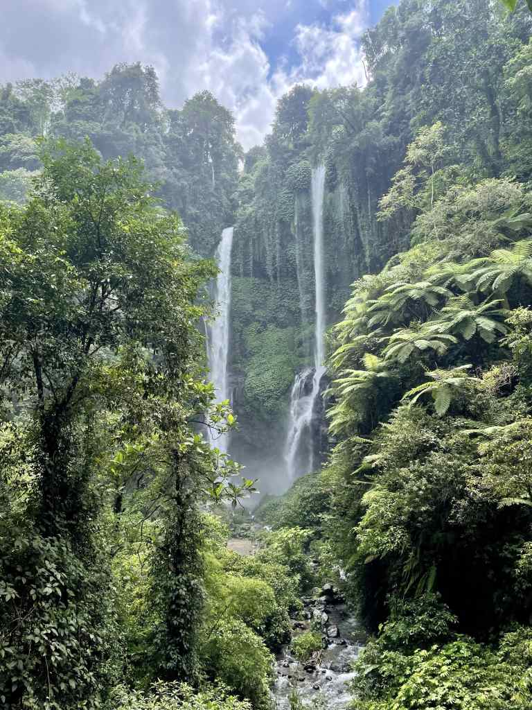 Šeit patiešām daba ir zaļās nokrāsās un viss ir tāds dzīvs un sulīgs. Tas protams pateicoties lietum, kas līst diezgan daudz lietus sezonā. Vispār interesanti, ka ir vietas, kur nav visu gadalaiku un cilvēki nekad nav piedzīvojuši sniegu. Te ir tikai divas sezonas – sausā un lietus. Visai garlaicīgi. Kā jau visam savi plusi un mīnusi, bet daba šeit ir varena un es noteikti Bali sauktu par ūdenskritumu valsti, jo atverot karti, tie ir visur un daudz. Apskatīt visus prasītu ļoti daudz laika un nav jau vajadzība. Esot pie milzu ūdenskrituma uzreiz saproti, cik maza daļiņa esi un nav nekā varenāka par dabu. Pie populārākajiem ūdenskritumiem ir jāmaksā ieejas maksa, kas ir visai simboliska un bieži vien jāiet kopā ar vietējo gidu (taču tas nav obligāti), kurš zina ceļu vai vienkārši vēlas justies noderīgs. Vietējie gidi srādā uz ziedojumu principu – atstāj tik cik uzskati par vajadzīgu. No sākuma nevarēju saprast, kāpēc tas vajadzīgs, tā taču brīvi pieejama vieta, bet cilvēki uztur to vietu pieejamu un atbrīvo no atkritumiem, ja tas nepieciešams. Kā jau varbūt zināms, tad tā šeit ir liela problēma, atkritumi ir visur, mežā, ceļa malās, ūdenī. Viņu atkritumu apsaimniekošana sākas ar labākajā gadījumā salasīšanu un tad sadedzināšanu. Šeit būtu daudz darba cilvēku izglītošanas ziņā un jaunu ieradumu izveidē, kā arī reālā atkritumu savākšanā un pārstrādē. Ja vēl runājam par dabu, tad liels skaistums ir viņu rīsu lauki, kaut kas tāds, ko nekad nebiju redzējusi. Tas lielais darbs, ko viņi iegulda, lai izveidotu un apstrādātu laukus ir neiedomājams. Tieši tāpēc arī, kas ļoti unikāls.