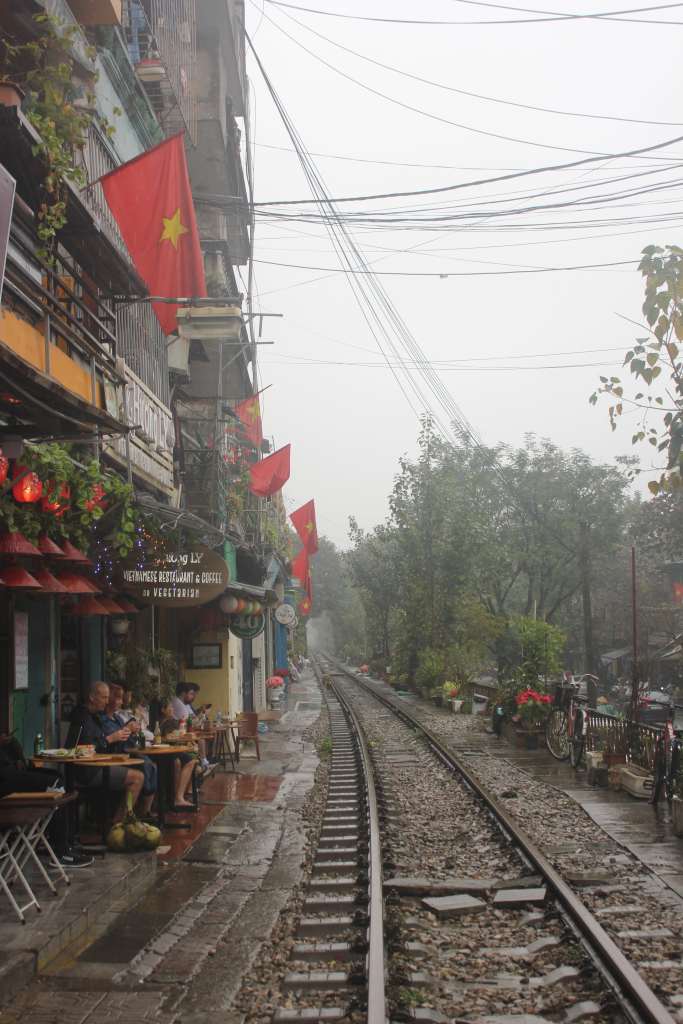 Ļoti interesanta vieta vai pareizāk iela Hanojā ir iela ar sliedēm, pa kuru vēl aizvien kursē vilciens. Vakaros, diezgan haotiskos laikos to var redzēt ar savām acīm. Interesanti, ka oficiāli tur nedrīkst vairs tā brīvi staigāt, galos sēž policija, bet kafejnīcu īpašnieki noķer tūristus un ved uz savu kafejnīcu un tad viss ir atļauts 😀