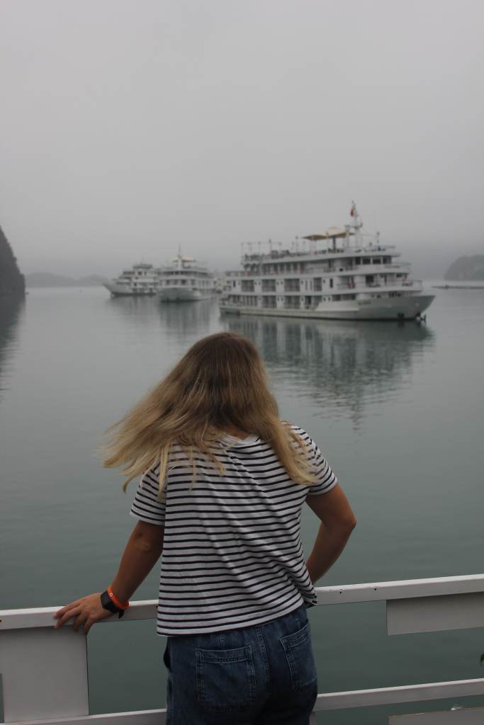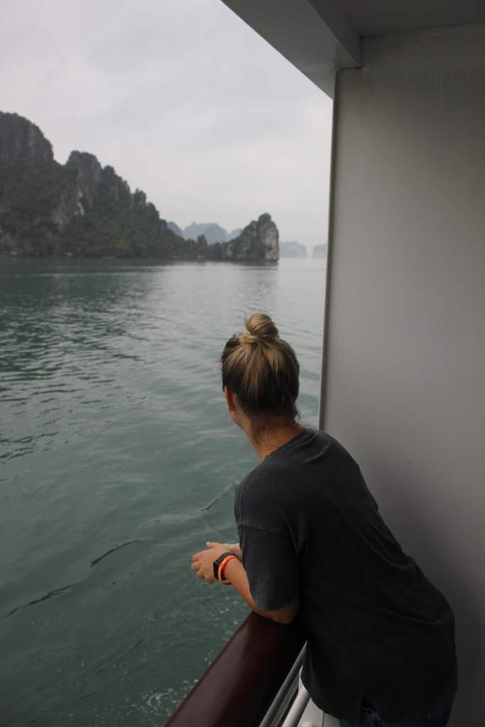 Viens no spilgtākajiem momentiem un piedzīvojumiem Vjetnamā bija kruīzs pa Halong līci. Jau sen zināju, kad būsim Vjetnamā šī būs vieta, kas jāapskata pavisam obligāti. Izlēmām par labu ‘’make it rain’’ momentam un rezervējām luksusa kruīzu un jāsaka, ka tas bija 100% tā vērts, jo izbaudījām braucienu. Viss bija lieliskā līmenī gan istaba, gan ēdieni un arī piedāvātās ekskursijas. Brauciens sākas Halong ostā, visi nolika savas mantas un devās uz brokastīm. Pa to laiku kuģis sāka savu ceļojumu. Pirmajā dienā sākumā laiks un redzamība bija laba, bet pēc laika parādījās migla, kas patiesībā visam braucienam piešķīra īpašu noskaņu. Kuģis piestāja vairākās vietās, viena no tām bija pērļu audzētava, kur varēja izbraukt arī ar kanoe laivām, otra vieta bija neliela sala, kur varēja uzkāpt augstāk virsotnē un redzēt daudzās saliņas no augšas. Cilvēku bija diezgan daudz, vasarā šeit noteikti jāpavada kāds ilgāks laiks, lai uzkāptu un apskatītu visu. Pēc tam kuģis devās tālāk un atrada vietu, kur noenkuroties uz nakti. Varēja baudīt vakariņas un citas izklaides. Diena bija piepildīta un skaisto skatu pilna.